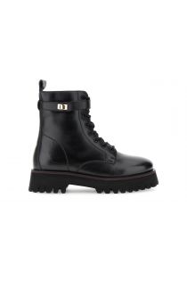 Tronchetti stringati in pelle con suola carrarmato e chiusura alla caviglia. soletto in pelle tacco alto 4,4 cm. perfetti per look decisi e comfort quotidiano.