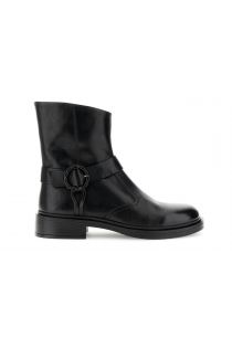 Tronchetti in pelle con fibbia fasciata decorativa. design essenziale e contemporaneo soletto in pelle e tacco alto 4 cm. eleganza urbana per ogni giorno.