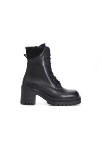 Tronchetti in pelle con imbottitura dietro. Suola carrarmato con tacco 6,5 cm