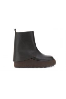 Tronchetti in pelle con risvolto dal design contemporaneo. chiusura con zip interna soletto in pelle. tacco 7,5 cm e plateau 4 cm per un’eleganza grintosa e confortevole.