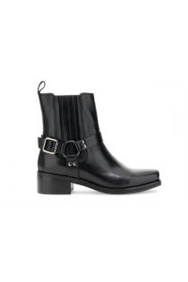 Tronchetti in pelle con sperone laterale e inserti elastici. soletto in pelle per un comfort superiore. tacco alto 4,5 cm. stile grintoso e dettagli decisi.