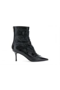 Tronchetti in pelle effetto naplak con arricciature e cerniera posteriore. design audace punta sfilata e tacco stiletto 7,5 cm. interno in pelle per comfort assoluto.