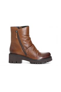 Tronchetti in pelle grinzata con zip obliqua. Tacco spesso in gomma e battistrada effetto carroarmato