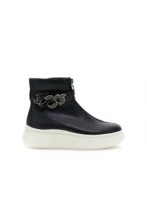 Tronchetti in pelle con accessorio catena laterale e zip interna. fodera in tessuto sottopiede in pelle suola platform 4 cm. grintosi versatile e ultra comodo.