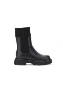 Tronchetto in pelle con calzino integrato tacco 4 cm e fondo carrarmato. avvolge la caviglia con grinta urbana e comfort ideale per look decisi e contemporanei.