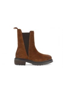 tronchetti in pelle scamosciata con elastici asimmetrici caramello