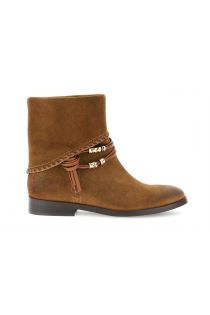 tronchetti in pelle scamosciata con infilatura e cavigliera cuoio