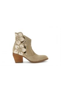tronchetti in pelle scamosciata traforati con fiori beige