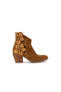 Tronchetto in pelle scamosciata traforata con fiori ricamo western e soletto in pelle. tacco da 7 cm che garantisce stabilità e comfort. un modello femminile e grintoso perfetto per look boho chic di stagione.
