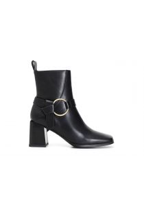 Tronchetti in simil pelle con accessorio circolare metallico che funge da cavigliera. Tacco squadrato-