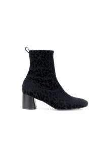 Tronchetti in tessuto stretch floccato dal pattern maculato tono su tono. il tacco grosso da 6 cm e la calzata comoda li rendono il tocco audace e fashion per ogni look.