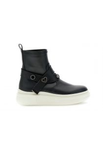 Tronchetti in pelle nera con cinturino gioiello e suola platform 4 cm. fodera in tessuto sottopiede in pelle zip interna. eleganti comodi e perfetti per ogni look.