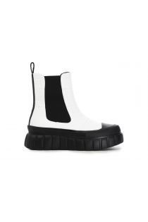 Tronchetti sportivi con elastico laterale in tessuto laminato trapuntato. Nuova suola rialzata caratterizzata da un motivo rigato. Fodera interna in calda simil pelliccia.