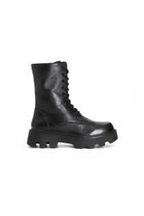 Tronchetto monocolore da donna in pelle allacciato. soletto in pelle e suola carro armato.