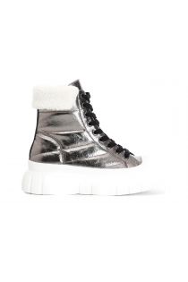 Tronchetto sportivo allacciato in tessuto laminato con imbottitura trapuntata. il tutto arricchito da un colletto in pelliccia sintetica. calzatura perfetta per le fredde giornate d'inverno. la suola rialzata è caratterizzata da un particolare motivo rigato.