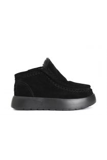 Tronchetto da donna con suola rialzata e con impunture. tomaia in pelle scamosciata e fodera in pelliccia sintetica.