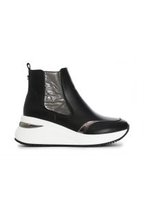 Tronchetto da donna in pelle rivestita con riporti nylon su elastici. fussbett interno.