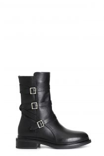 Tronchetto da donna in pelle con 3 fibbie ornamentali. il tacco è alto 30 mm.