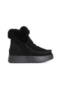 Tronchetto donna in pelle scamosciata acon bordo mocassino e cuciture a croce ornamentali. la fodera e il soletto sono in pelliccia sintetica. calzatura calda e comodissima. l'ideale per le fredde giornate d'inverno.