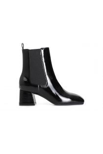 Tronchetto da donna effetto vernice.soletto pelle con elastico larterale per agevolare la calzata. tacco spesso 60 mm. il soletto è in pelle.