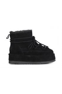 Tronchetto donna in pelle scamosciata alla caviglia con pelliccia sintetica. la fodera e il soletto sono in pelliccia sintetica. calzatura calda e comodissima. l'ideale per le fredde giornate d'inverno.