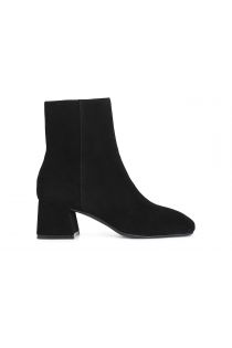 Tronchetto da donna in camoscio dalla forma stondata. cerniera nella parte interna della calzatura. il soletto è in pelle. tacco spesso alto 60 mm.