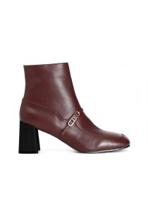 Tronchetto da donna in nappa con fibbia personalizzata. cerniera nella parte interna. calzatura comoda dallo stile innovativo e raffinato oltre che molto femminile. la punta e il tacco da 65 mm sono squadrati. il soletto è in pelle.