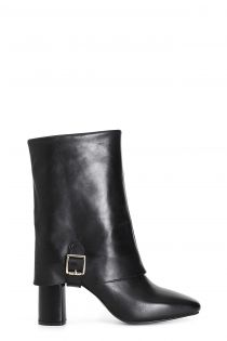 Tronchetto da donna in nappa con maxi risvolto e fibbia. modello iconico dalla forma leggermente arrotondata per uno stile innovativo e raffinato. tacco alto 80 mm. il soletto è pelle.