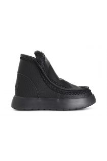 Tronchetto da donna con suola rialzata. tomaia in pelle e fodera in pelliccia sintetica.