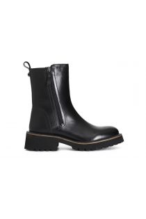 Tronchetto da donna in pelle con doppia cerniera con borchietta personalizzata. tacco alto 50 mm. il soletto è in pelle.