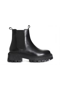 Tronchetto da donna in pelle con elastici laterali per agevolare la calzata. tacco alto 55 mm. il soletto è in pelle.