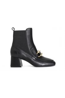 Tronchetto da donna in pelle con elastico e accessorio. tacco spesso alto 60 mm.il soletto è in pelle.