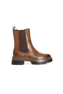 Tronchetto da donna in pelle con elastici laterali e forature all'inglese. il soletto è in pelle. suola a carro armato alto 60 mm