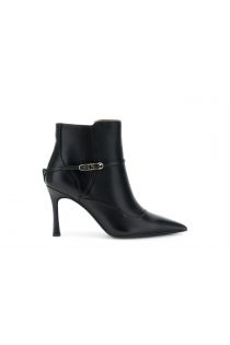 Tronchetto da donna in pelle con fibbia personalizzatae cerniera nella parte interna. tacco fine alto 87 mm. forma sfilata. il soletto è in pelle. calzatura dallo stile elegante e femminile.