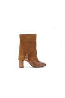 Tronchetto in nappa e camoscio con maxi risvolto e fibbia. modello iconico dalla forma leggermente arrotondata per uno stile innovativo e raffinato. tacco alto 80 mm. il soletto è pelle.
