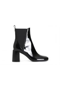 Tronchetto da donna con elastico in pelle naplak. borchia personalizzata nella parte posteriore. tacco fasciato alto 80 mm. il soletto è in pelle. ideale in abbinamento a molteplici look da mattina a sera.