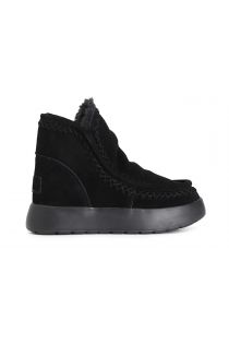 Tronchetto da donna con suola rialzata. tomaia in pelle scamosciata e fodera in pelliccia sintetica.