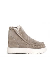 Tronchetto da donna con suola rialzata. tomaia in pelle scamosciata e fodera in pelliccia sintetica.