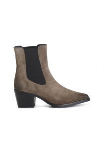 Tronchetto in pelle scamosciata con elastici laterali.. cerniera nella parte interna. tacco alta 55 mm. il soletto è in pelle. una calzatura dallo stile texano con un carattere grintoso che garantirà una marcia in più ai vostri look.