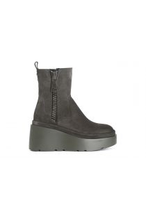 Tronchetto da donna in pelle scamosciata con cerniera in metallo a decoro. cerniera interna come chiusura. tacco 70 mm e plateau 30 mm. il soletto è in pelle.