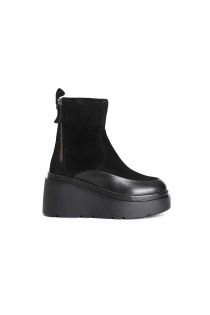 Tronchetto da donna in pelle scamosciata. cerniera in metallo a decoro. cerniera interna come chiusura. tacco 70 mm e plateau 30 mm. il soletto è in pelle.