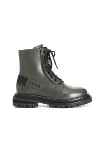 Tronchetto donna allacciato in pelle arricchito sia da una cerniera in metallo da borchie e da un particolare nastro logato cafènoir. il soletto è in pelle.