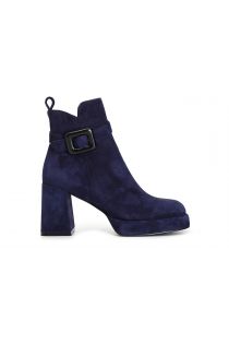 Tronchetto da donna in camoscio arricchito da un elegante fibbia con tacco 80mm e plateau 20mm. il soletto è in pelle. comodità ed eleganza allo stesso tempo ed un carattere unico adatto ad ogni outfit.