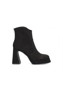 Tronchetto da donna in microfibra con cerniera sul retro per agevolare la calzata. calzatura dal perfetto stile seventies. il tacco altezza 95mm insieme al plateau di 18mm donano equilibrio tra altezza bellezza e comodità.