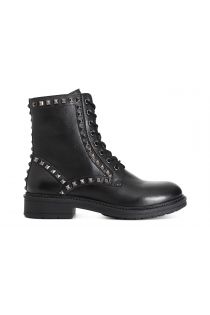 Tronchetto donna in pelle allacciato impreziosito da borchie di tendenza. tacco di 35mm. il soletto è in pelle.