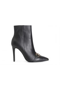 Tronchetto donna in pelle arricchito da elegante accessorio sulla tomaia. il soletto è in pelle e il tacco è da 100mm. calzatura iperfemminile.
