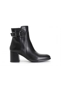 Tronchetto in pelle con fibbia laterale ed anello inserito a decoro. tacco da 60mm e soletto in pelle. ideale in abbinamento a molteplici look da mattina a sera.