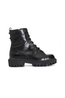 Tronchetto da donna in pelle con lacci fatti impreziositi da strass ultrabrillanti. il soletto è in pelle. la suola carro armato in materiale extralight slancia la modelleria e la rende iper attuale.