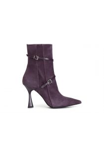 Tronchetto da donna in pelle scamosciata dallo stile elegante e femminile. calzatura arricchita da doppio cinturino in pelle a decoro. tacco slim leggermente a rocchetto altezza 95mm. soletto in morbido pellame.