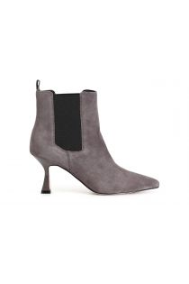 Tronchetto donna in pelle scamosciata con tacco alto 80mm dalla forma sfilata. elastici laterali per agevolare la calzata. il soletto è in pelle.